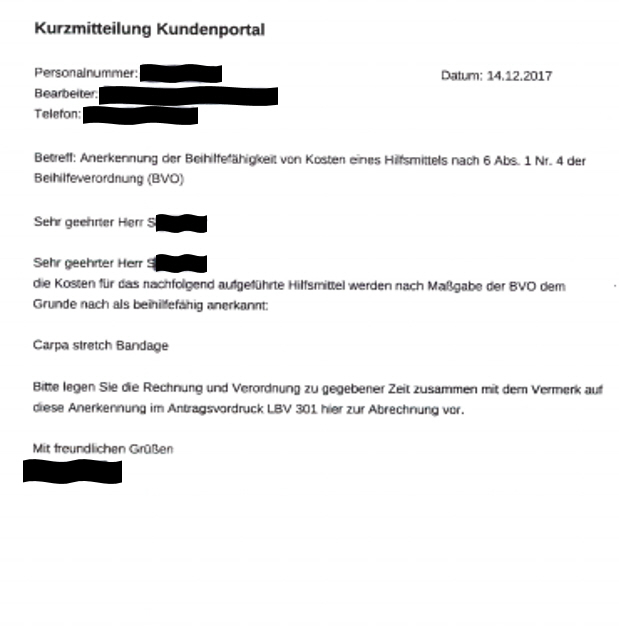 Ansonsten kann die Kasse nur Heilmittel bezahlen, welche eine Zulassungsnummer vorweisen können. Oder besteht mittlerweile die Aussicht, dass Sie für CarpaStretch eine solche erhalten?